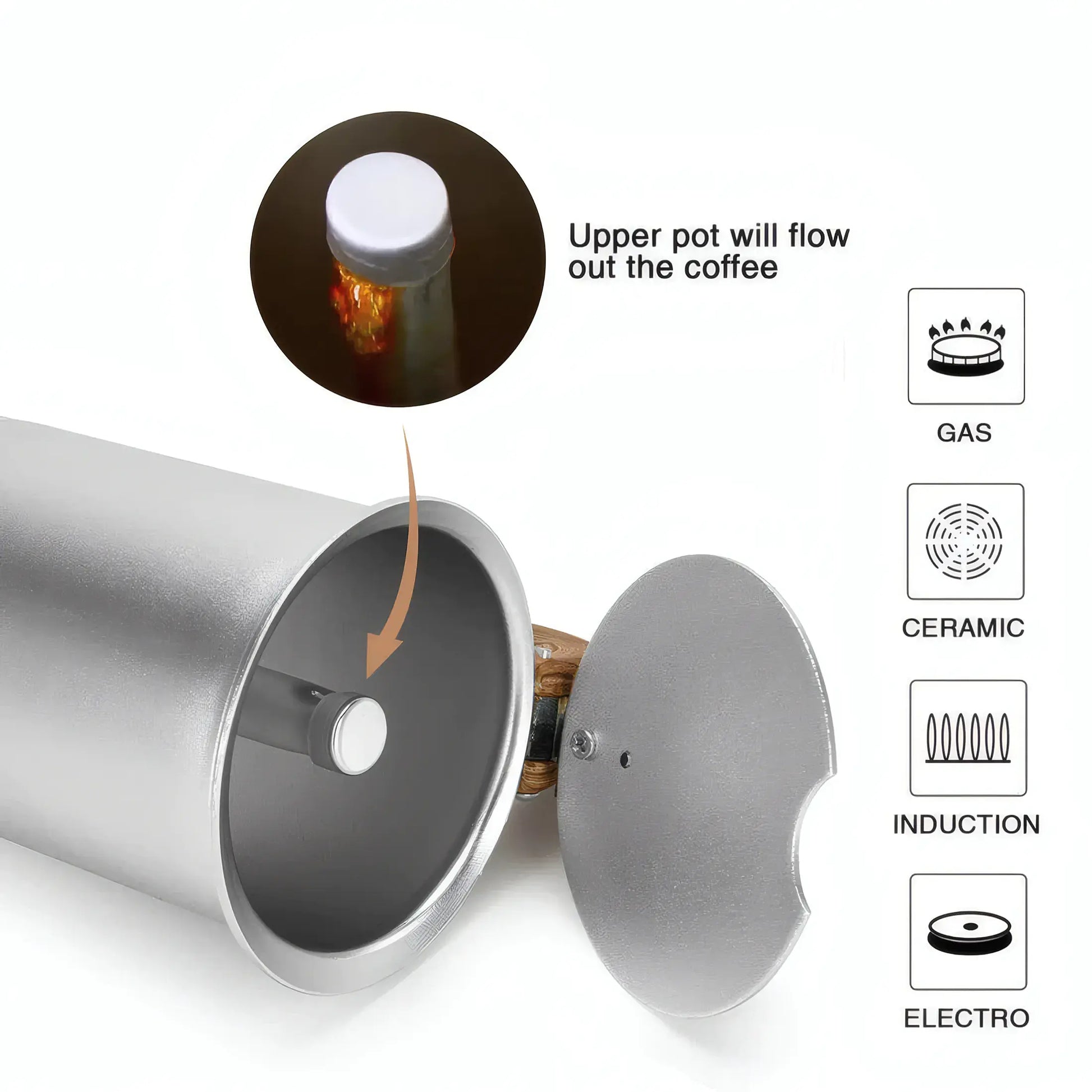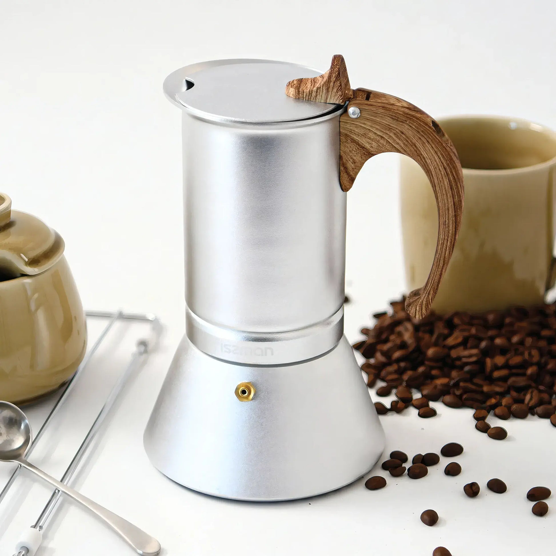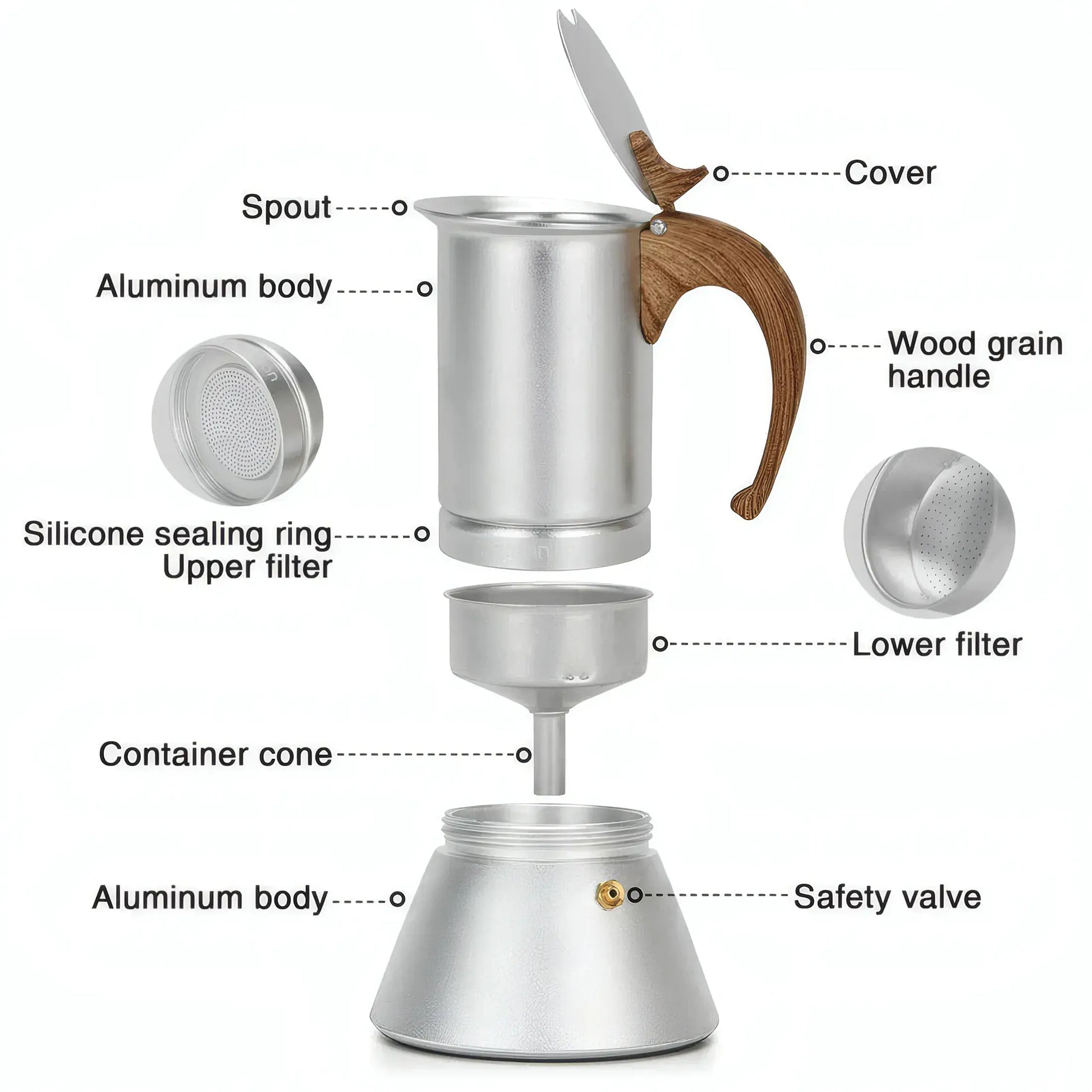 - 1 x Coffee Maker (300ml) For 6 Cups (Pressed Aluminium Wooden Handle And Knob