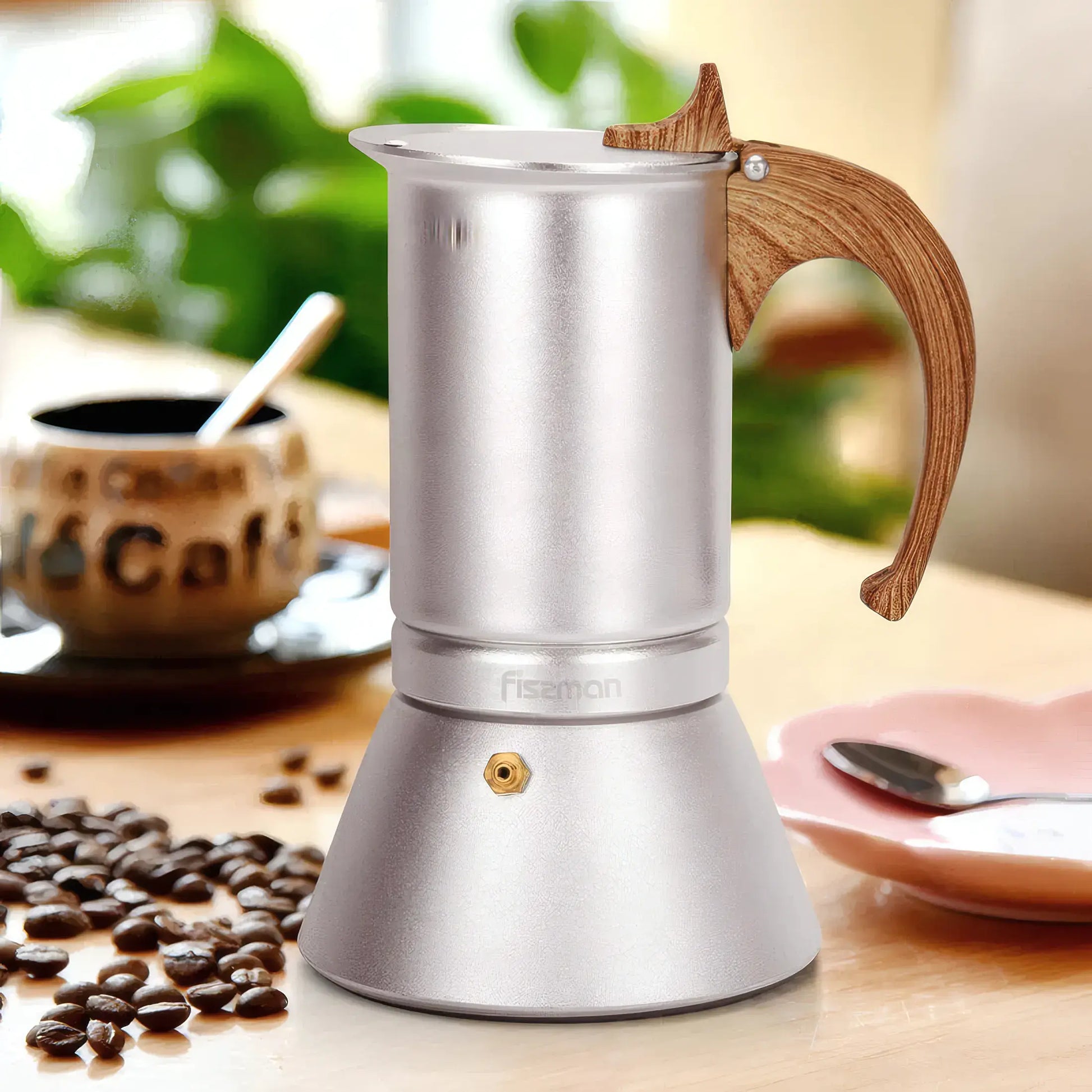 Coffee Maker 300ml For 6 Cups Pressed Aluminium Wooden Handle And Knob