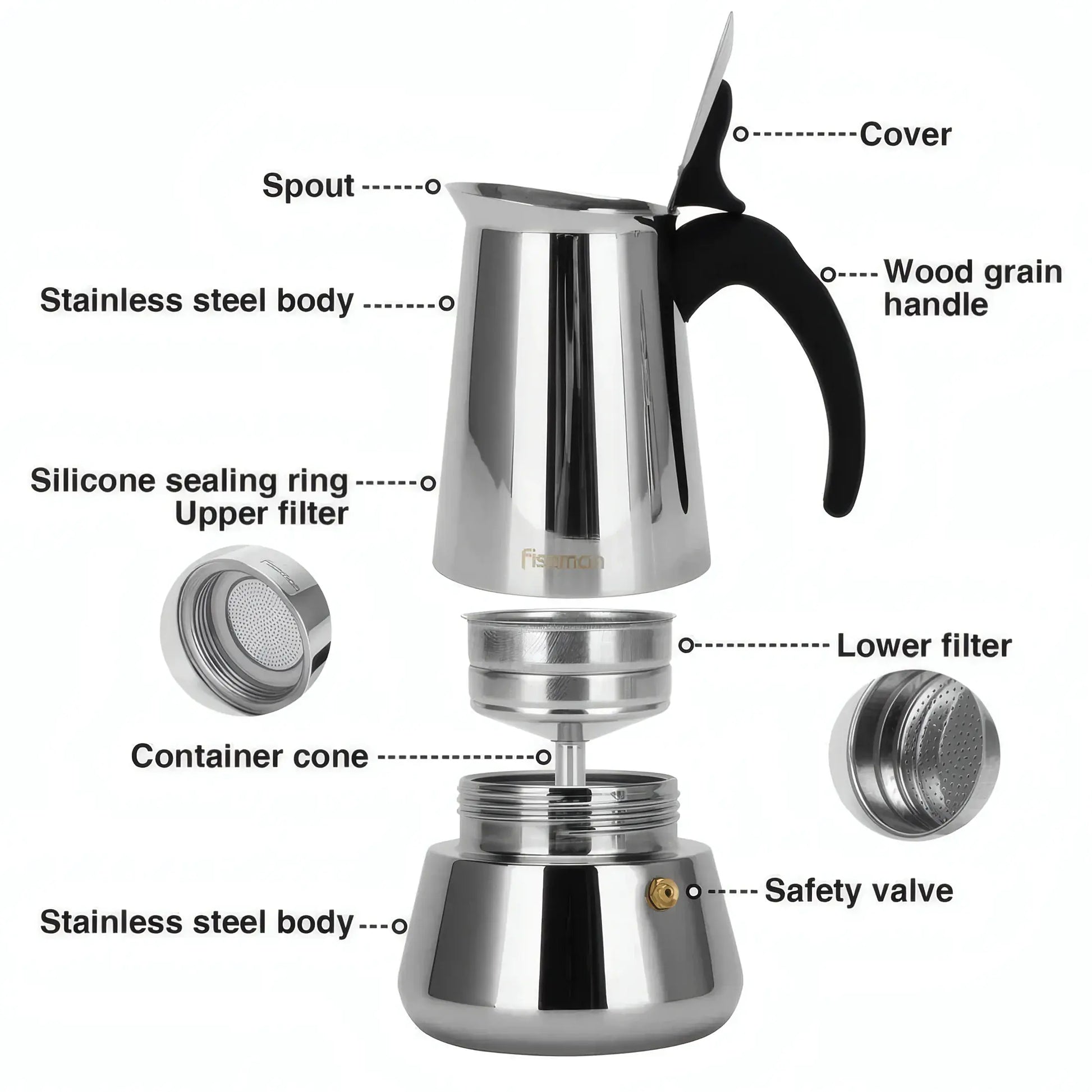 - 1 x Coffee Maker 300ml for 6 cups - Stainless Steel
