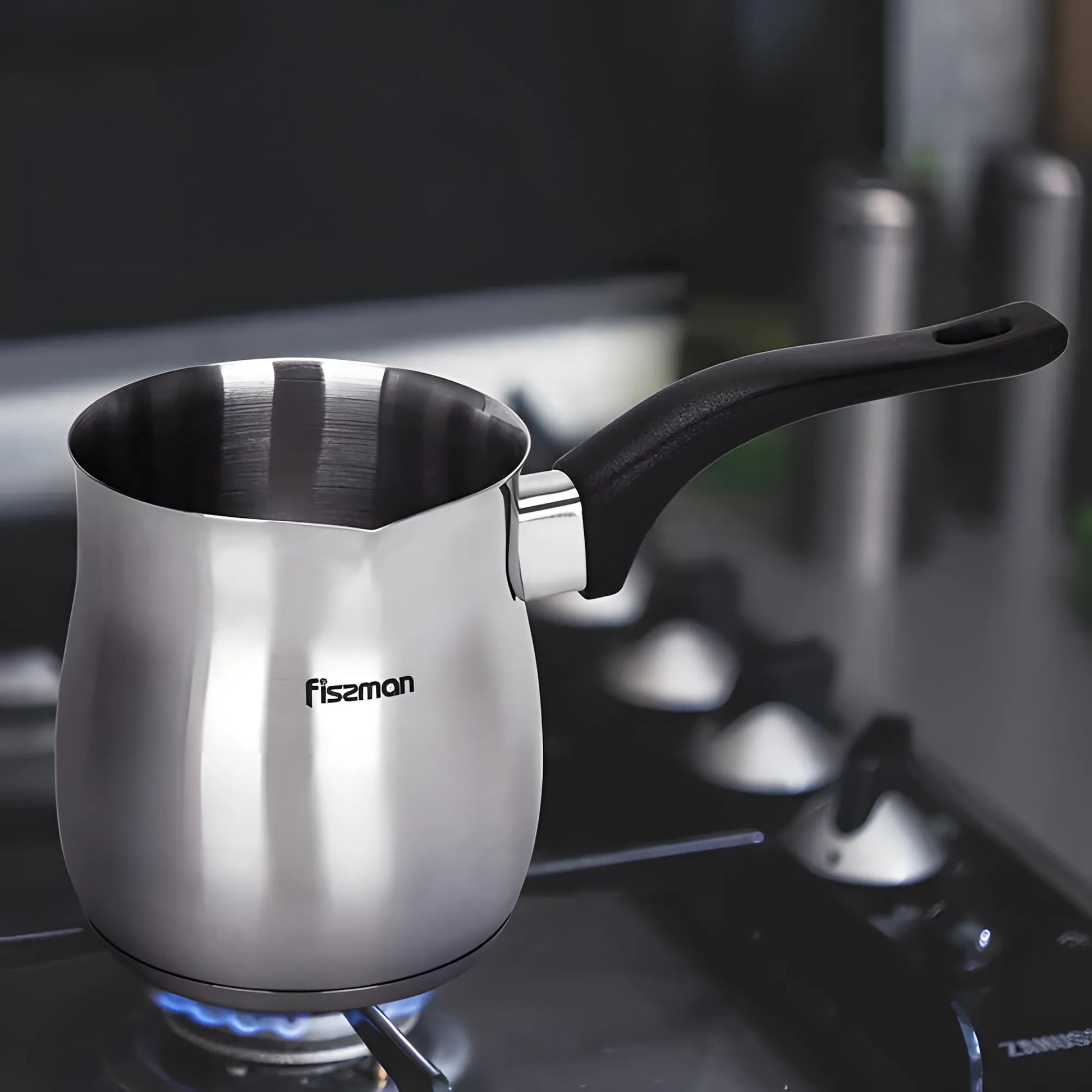 Measuring at 8.5cm in diameter and with a capacity of 530ml, this coffee pot is suitable for use on gas, electric, glass ceramic, and induction stovetops. Its multilayer capsule type sensing bottom ensures high thermal conductivity and is applicable to all types of plates.