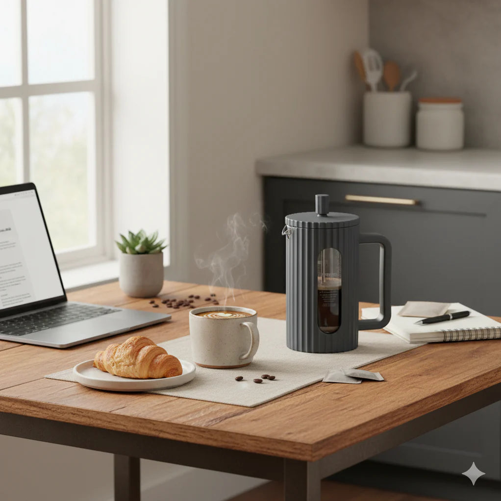 With its elegant design and durable construction, the French press delivers full-bodied, rich flavors by allowing the coffee grounds or tea leaves to steep directly in the water. The fine mesh filter ensures a smooth, grit-free drink every time, so you can enjoy a pure, aromatic cup. This easy-to-use press enhances the brewing experience, letting you control steeping time and flavor intensity.