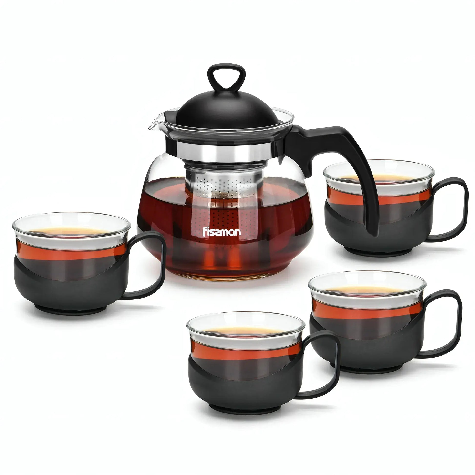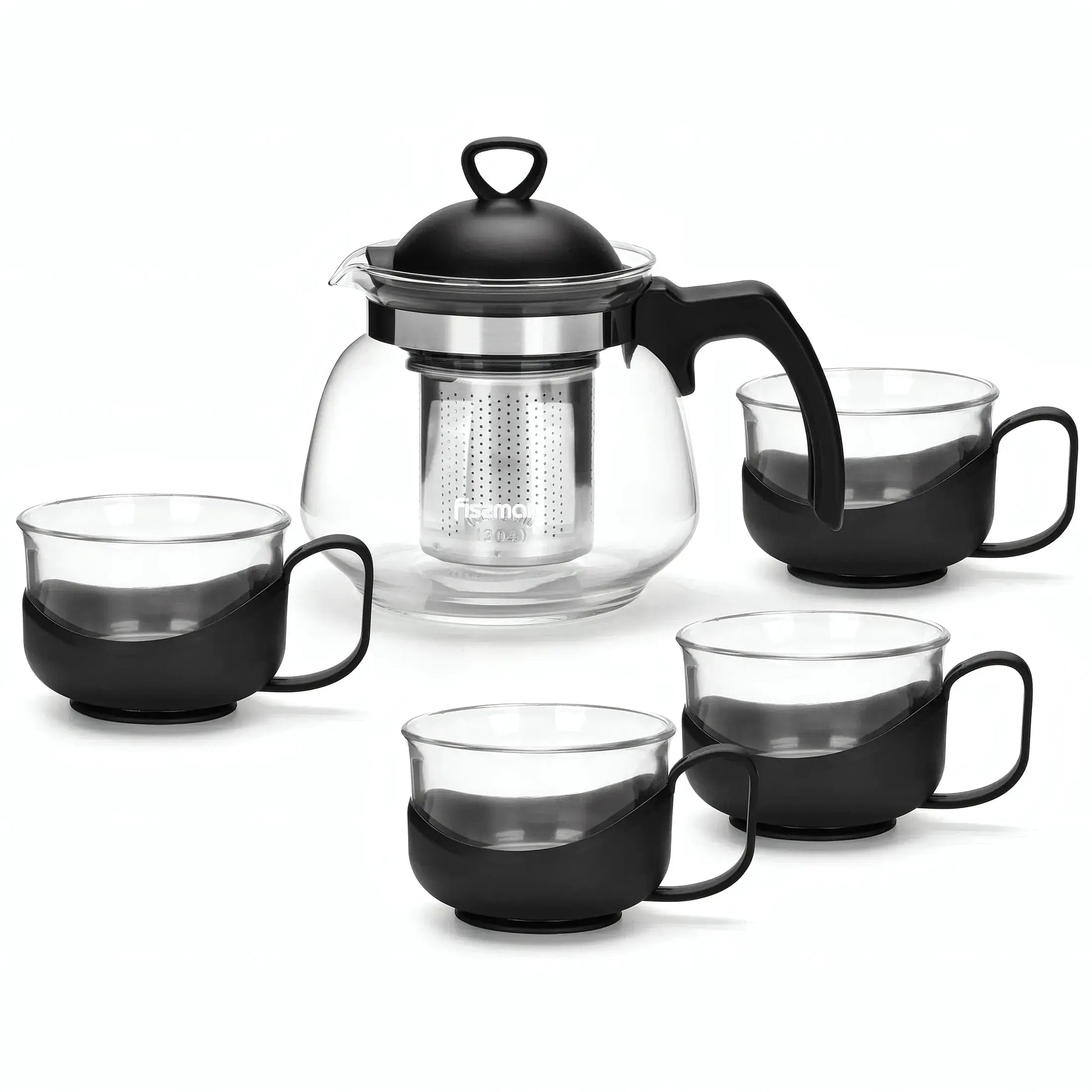 - 1 x Teapot 700 ml with 4 cups 150 ml (glass)